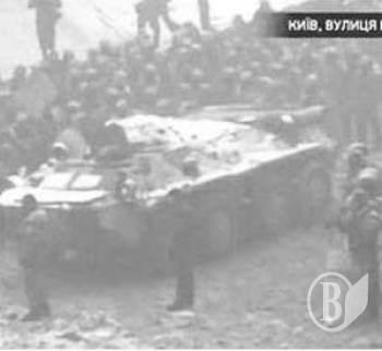 В Киеве по улице Грушевского бойцы из отряда спецназначения «Беркут» подогнали бронетранспортер.
