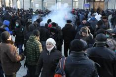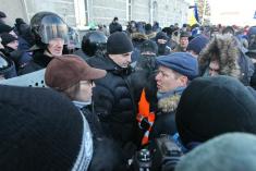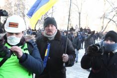 До речі, сьогодні, 26 січня вранці генерал Михайлик на прес-конференції в прямому ефірі (вона є вже в запису) сказав, що міліція не застосовувала світло-шумових гранат, які поранили ноги журналістам і депутатам. Це м’яко кажучи не до честі Вам, пане генерале. За ці неправдиві слова вам, пане генерале варто зірвати погони, як це зробили полковнику Кочубею в 2004 році. І ми доведемо це вам публічно, що ви обманювали журналістів на прес-конференції вранці.
