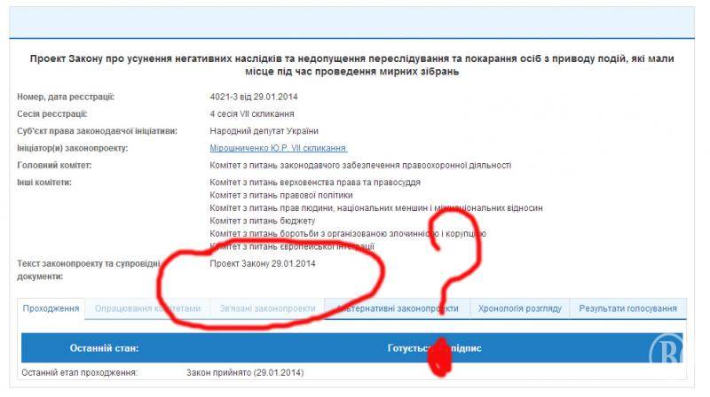 Перед голосованием президент Виктор Яукович несколько часов уговаривал Партию Регионов проголосовать за проект Мирошниченко.