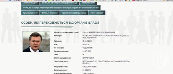 Информация о Януковиче появилась на официальном сайте УМВД Украины.