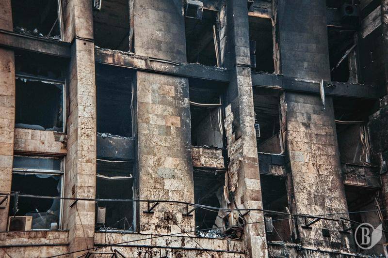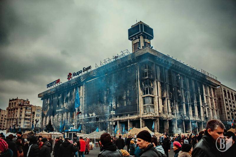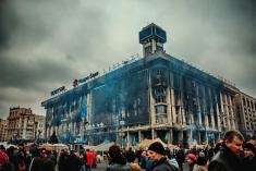 Наиболее жутким на Майдане выглядит Дом Профсоюзов. Полусожженный, он стоит и показывает всю трагичность тех событий, которые происходили здесь в течение нескольких месяцев.