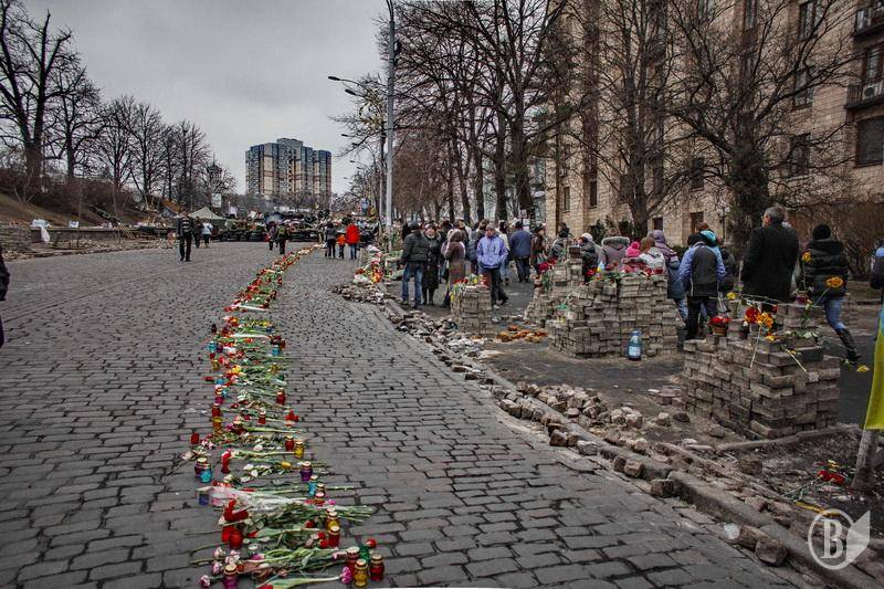 Проходя мимо мест смерти активистов, ти понимаешь, что идешь по их крови, что несколько дней назад здесь еще велась борьба за свободу нашей родной Украины. Вдоль всей Аллеи - дорожка из цветов и свеч. Если пройти дальше, можно увидеть, как возводят памятник с цитатой одного Киевлянина: