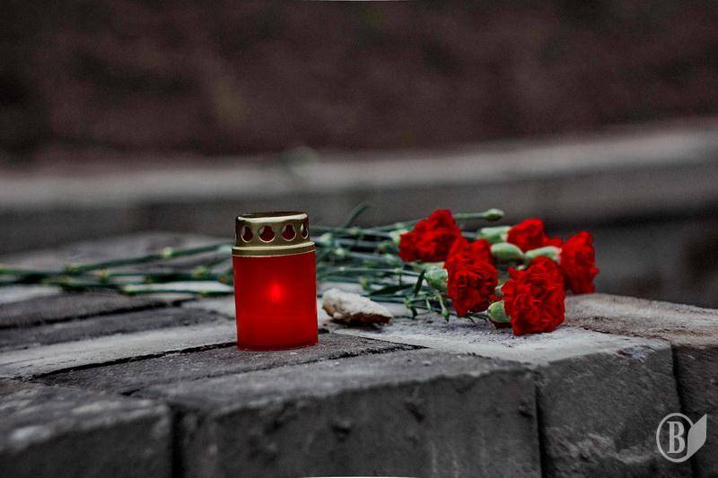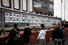 Дальше, на улице Грушевского есть доска памяти погибшим, около которой люди со скорбью в глазах смотрели на лица своих Героев.