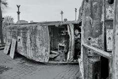 А на мосту целая "выставка" щитов, которыми защищались наши Воины. Некоторые были деревянными, некоторые металлические, но защититься от пуль снайперов ими, наверно, было крайне трудно.