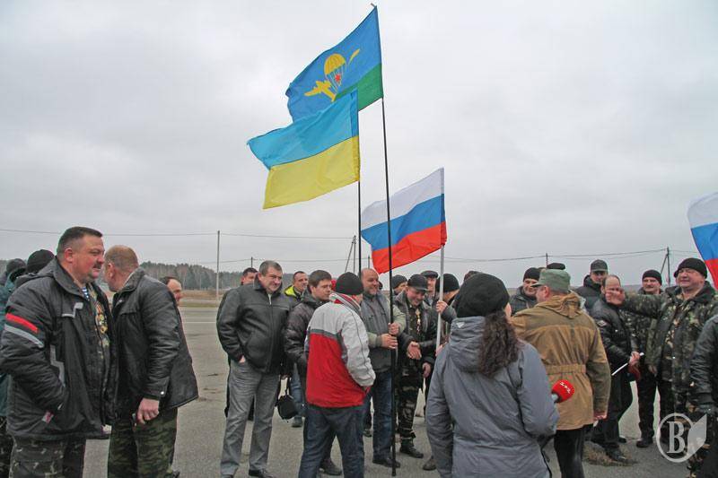 Спустя некоторое время, в 12:40 русские воины-афганцы с русскими флагами подошли к нашим, наши - с украинским и флагом воздушно-десантных войск.