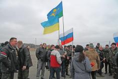 Они надели боевые ордена и медали. Около 30 человек на нескольких машинах и бусиках выехали на границу с Россией вместе с десятком журналистов.