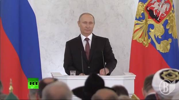 При цьому розколу України Володимир Володимирович "не бажає". Він, у відповідності до написаного тексту, поважає своїх братів-українців. І Крим залишиться спільним – російським, українським та татарським.