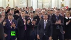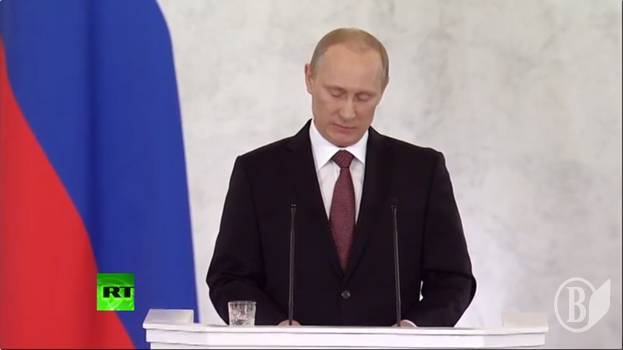 Кульмінація проповіді великого Імператора – це порівняння прагнень жителів Абхазії та Косово - чому їм можна існувати незалежно, а Криму заборонено? До речі, Росія поважає вибір обох республік ( ви що – не знали?).
