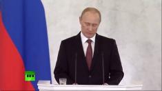 Словесні тортури президент РФ Володимир Путін почав із повідомлення про життєво важливе історичне рішення – тримати інтригу не в його стилі.