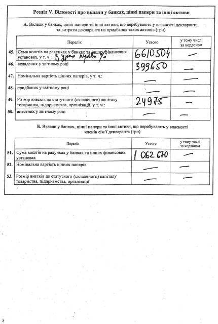В эту сумму входит заработная плата за время пребывания на должности народного депутата Украины (150812 гривен), проценты по банковским депозитам (614320 гривен), доход от отчуждения движимого имущества (980 000 грн).