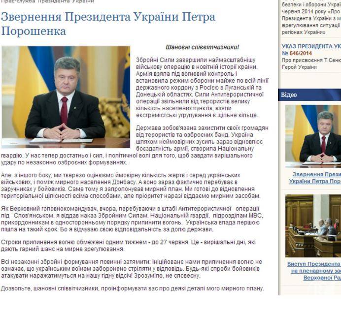 Когда я нашел запись обращения Порошенко к народу в Интернете, то, по-видимому, кто-то уже подсказал Цеголко: