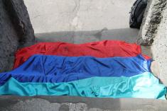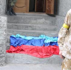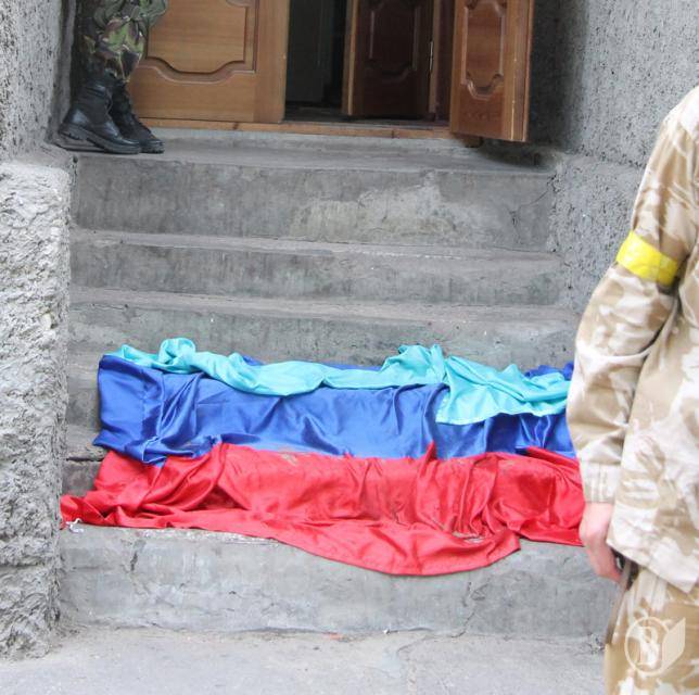 На снимке: флаг «ЛНР», в качестве коврика для ног в расположении черниговских ребят в зоне АТО.