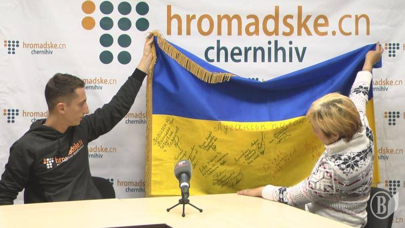 Мама Таня также показала украинский флаг, который она привезла из плена. Когда-то он реял над Луганской таможней. Боевики вытирали о него ноги. Мама Таня не могла на это смотреть и спрятала стяг. Если бы террористы нашли его - расстреляли бы ее на месте.