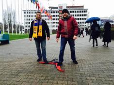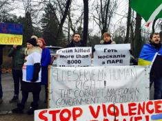 «Приїхали до Страсбурга підтримати українську діаспору, яка вимагає від ПАРЄ вигнати російську делегацію і звільнити Надію Савченко. Перед входом у приміщення ПАРЄ разом з Артемом Вітко (також нардеп- «радикал» - ред.). Облив російського комуняку Зюганова кров'ю і дав по його ворожої пиці! », - нардеп від «Радикальної партії» Дмитро Лінько.