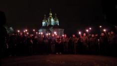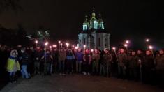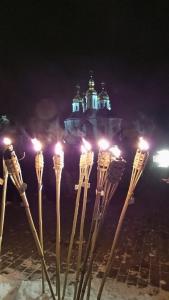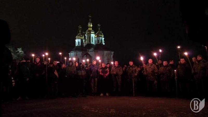 Они прошли с факелами от мега-центра до Катеринской площади с остановкой на Красной площади и около названных бюстов героям гражданской войны.