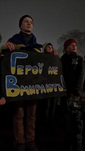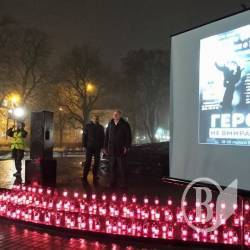 С лампадками и свечами, цветами, национальными флагами и плакатами с надписью «Герои не умирают» пришли сегодня черниговцы в сквер имени Попудренко.