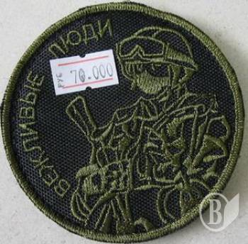 В Гомеле в магазине военной одежды продают такие вот интересные шевроны с надписями "Кошу укроп", "Вежливые люди" и "Здравствуйте! Я русский оккупант".
