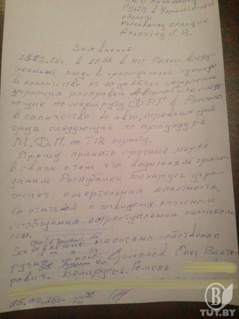 «В украинских Репках бойцы "Правого сектора" удерживают фуры с белорусскими дальнобойщиками», – кричить заголовок матеріалу Олени Бичкової, розміщений інтернет-виданням TUT.BY.