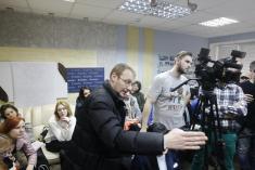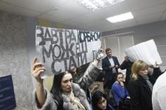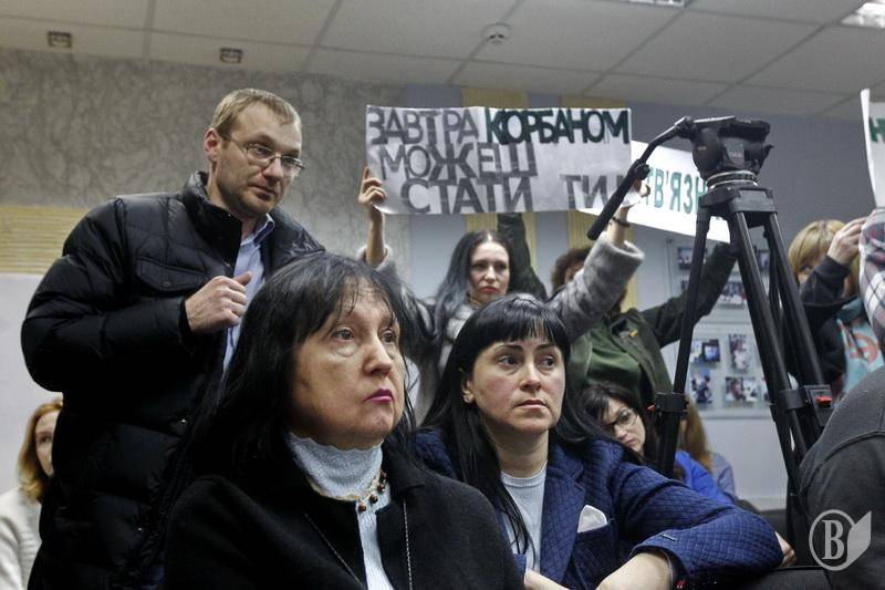 Пожаловали на событие люди не только с камерами, диктофонами, блокнотами и тому подобное, но и с плакатами с фамилией конкурента Березенко на выборах в Раду – Геннадия Корбана.