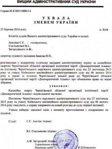 23 березня Вищий Адміністративний суд України частково задовольнив касаційну скаргу ДемАльянсу та повернув справу на повторний розгляд до суду першої інстанції.