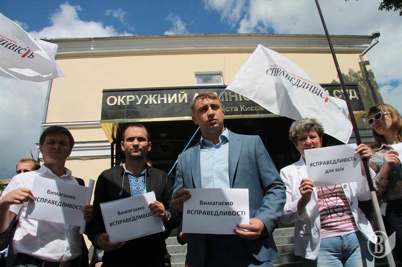 Чернігівська команда Руху «Справедливість» разом з представниками інших областей пікетувала окружний Адміністративний суд Києва.