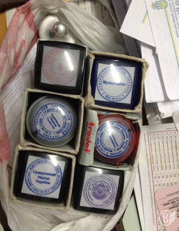 Нижче – фото «суверенних» атрибутів, вилучених під час обшуку.