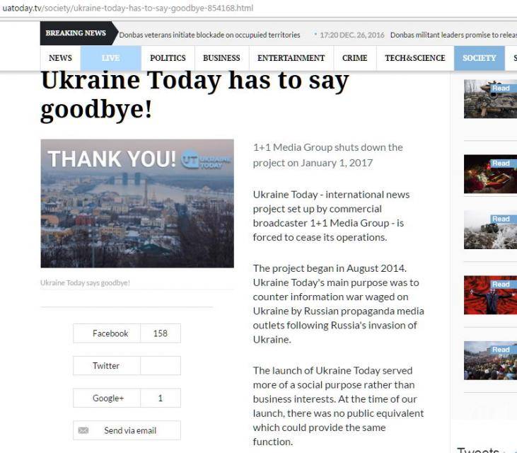 З 1 січня 2017 року група «1+1 медіа» закриває проект «Ukraine Today».