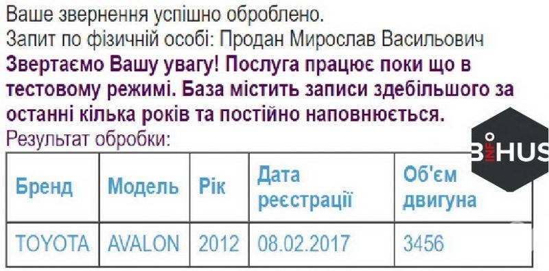 Сам Продан місяць тому придбав Toyota Avalon 2012 р.в. Продан вказав вартість авто у 467500 грн, однак на ринку така машина коштує майже вдвічі більше – близько 30 тис. дол.