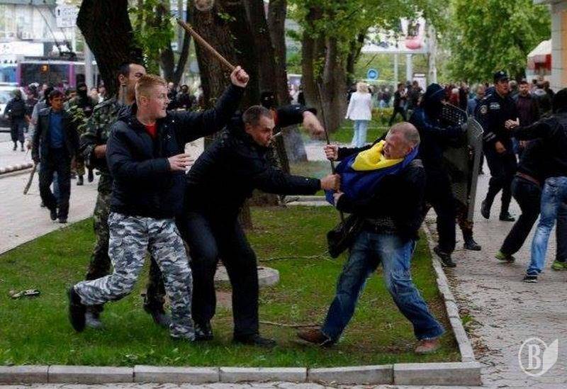 Акція тривала близького години. Такий «голос Донбасса» навесні 2014 року задушили озброєні тітушки в камуфляжі й масках, які розігнали акцію громадян за мовчазного потурання тамтешньої міліції.