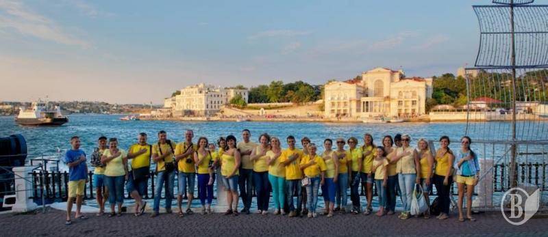 Жителі Севастополя, який разом з поки що островом Крим перебуває під анексією держави-агресора РФ, привітали Україну патріотичним флешмобом.