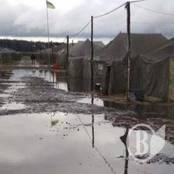 Нагадаємо: там, у «Гондурасі», як його іноді називають (мабуть не лише через певну співзвучність) намети для військових, що мають взяти участь у навчаннях, пошкоджені та стоять у болоті.