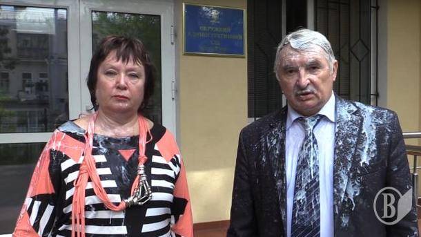 Представники націоналістичної організації «С14» біля суду в Києві облили кефіром Наталію Вітренко – голову Прогресивної соціалістичної партії.