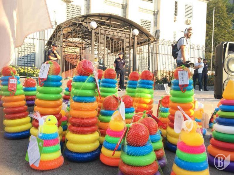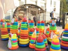 До установи принесли чимало дитячих різнобарвних пірамідок.
