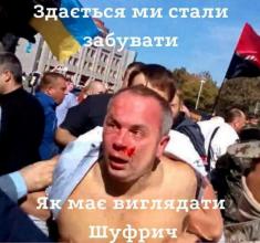 Так, пан Шуфрич, будучи нібито народним депутатом України і представляючи, за визначенням, український народ, виступив в залі Ради за український підрозділ церковного управління ФСБ РФ та на додачу чимось йому завоним постер про буцімто кума ворожого російського фюрера.