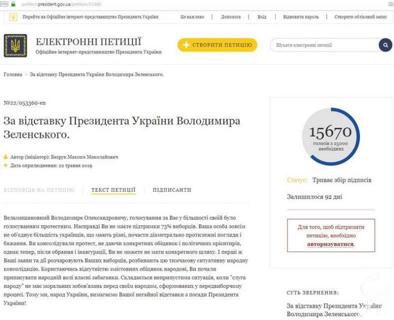Дата оприлюднення петиції – вчора, 22 травня 2019-го, але голосів вже зібрано більше половини потрібного – 15670… ні, вже 16250 із 25000 мінімально потрібних.