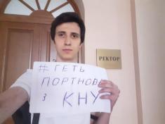 На четвер, 20 червня, активні студенти Київського національного університету ім. Тараса Шевченка закликали інших студентів, співробітників, викладачів та випускників КНУ «стати на захист честі і репутації свого університету» та приєднатися до акції протесту біля стін юрфаку.