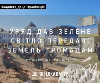 16 листопада 2020 року Кабінет Міністрів України ухвалив Постанову № 1113, яка запускає механізм повноцінної передачі земель сільськогосподарського призначення усім без виключення об‘єднаним територіальним громадам нашої держави.