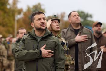 Президент України Володимир Зеленський узяв участь у піднятті прапора України у звільненому Ізюмі на Харківщині, повідомляється у фейсбуці 25 повітрянодесантної Січеславської бригади.