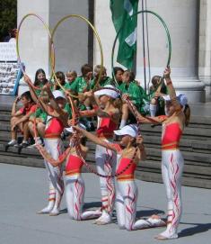 У цей час відбувались показові виступи спортсменок художньої гімнастики, важкоатлетів та борців-дзюдоїстів та факельна естафета. Лунали поздоровлення та відчувалась загальна суспільна надія на наших спортсменок.