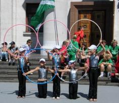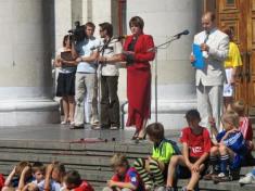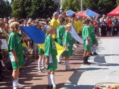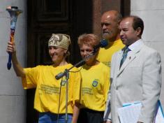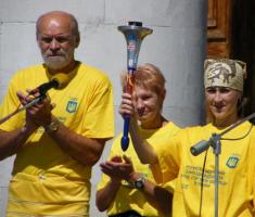 У чудовій святковій піднесеній атмосфері, коли надворі сонечко, на небі ні хмаринки звучали привітальні слова організаторів свята, на фоні яких кружляли по колу на площі та сигналили весільні машини, оточені «байкерськими» мотоциклами. На декілька секунд навколишні люди забули, куди прийшли і уважно вивчали такий собі весільний кортеж. Після закінчення весільного звичаю кататись по місту, глядачі і учасники святкової церемонії «повернули» свою увагу у бік олімпійського свята.