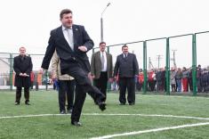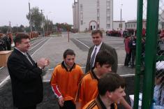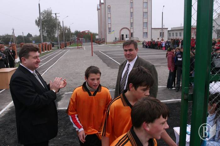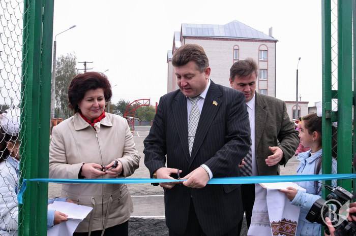 Разрезал ленту на входе на спортплощадку заместитель председателя, руководитель аппарата Черниговской ОГА Владимир Приходько.