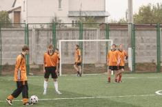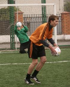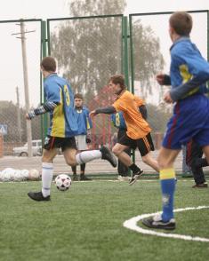 Здесь же началась игра двух команд школьников, одетых в футболки разного цвета. Почему-то именно голубого и помаранчевого.