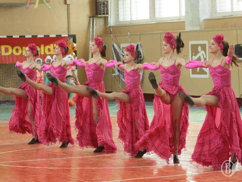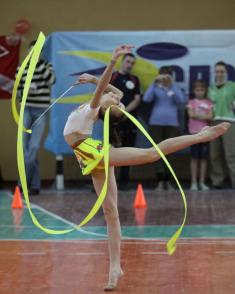 На фото – открытие соревнований выступлением юных гимнасток и комбинированная эстафета.
