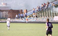 Примерно в середине первого тайма, на седьмом секторе была взорвана дымовая шашка. Ну, была себе и была. Кроме парней с голым торсами, самих же её и взорвавших, на секторе никого не было, а потому и весь не унесенный ветром дым прошел исключительно через их легкие.