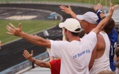 Ни через минуту, ни через две гимн так не зазвучал. И тут, в полной тишине и неопределенности, шальные глотки из третьего сектора заревели «Ще не вмерла…». Их подхватил кое-кто на других секторах и, в итоге, флаг был поднят над стадионом, как и положено, под звучание гимна. Пусть и без музыки, ценность которой значительно ниже исполнения акапелло.