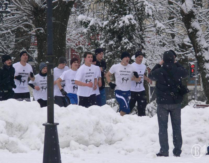 Після завершення пробігу його учасники влаштували силове змагання "лава на лаву", чим привернули увагу "православной обществєнності" з незаконного намету під Катерининським храмом до здорового способу життя.