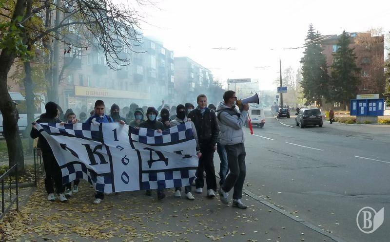 Учасники зібралися на Красній площі і пройшли повз стадіон ім. Гагаріна до технологічного університету. Цього разу фани "Десни" знов подякували "жителям Донбасу", а міліції на горіхи дісталося тільки "в усній формі"...