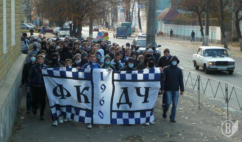 Напередодні останньої гри Чернігівської "Десни" з "РеалФарм" (Южное) відбувся марш фанатів команди.