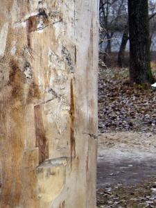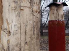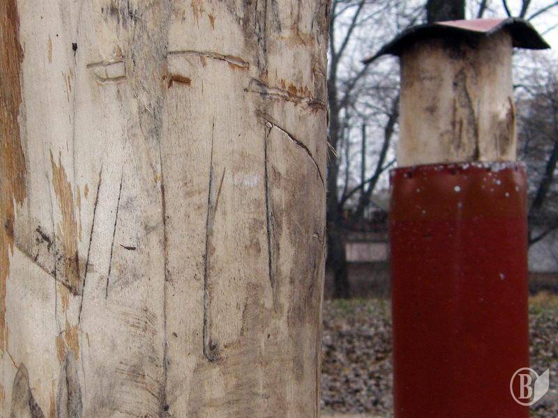 А для чого дві «голі» колоди? Мабуть, теж для побиття. Але не голими руками. Гіпотезу підтверджують рубці й порізи на них, видні від «голови» до «ніг». Хтось тут вправляється з ножичком. Можливо й не один.