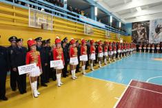 А вечером в спортивном зале областной детско-юношеской спортивной школы состоялся парад-открытие соревнований. Тридцать три команды-участницы выстроились под крышей спортивного сооружения.